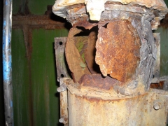 Další častý problém bývá prasklý a protékající odkalovací ventil, který se musí vyměnit, aby vám přebytečná vlhkost uvnitř dříku způsobující masivní korozi nezkracovala životnost vodojemu. Také by se v zimních měsících z vnitřní části dříku stala ledová jeskyně.